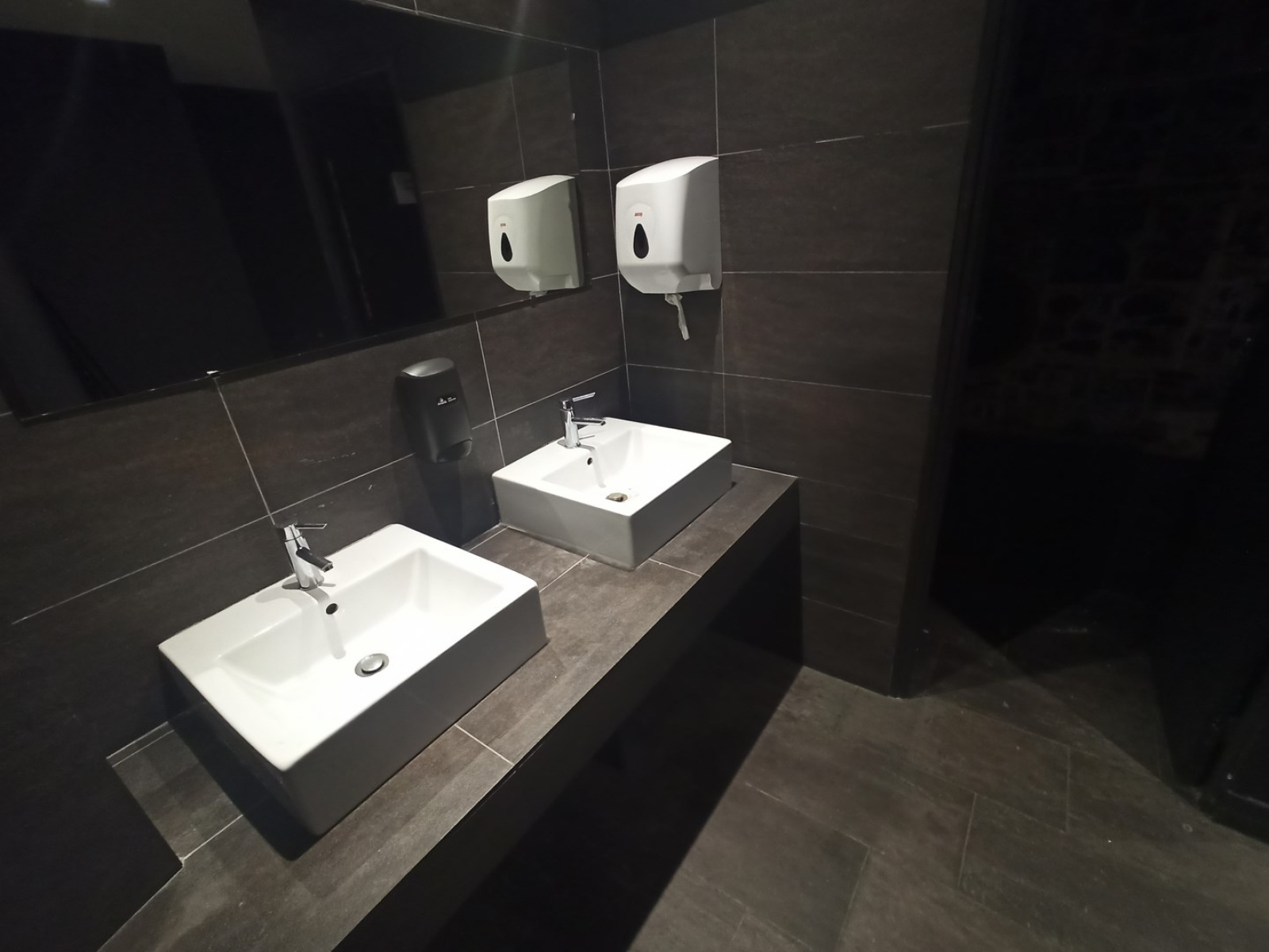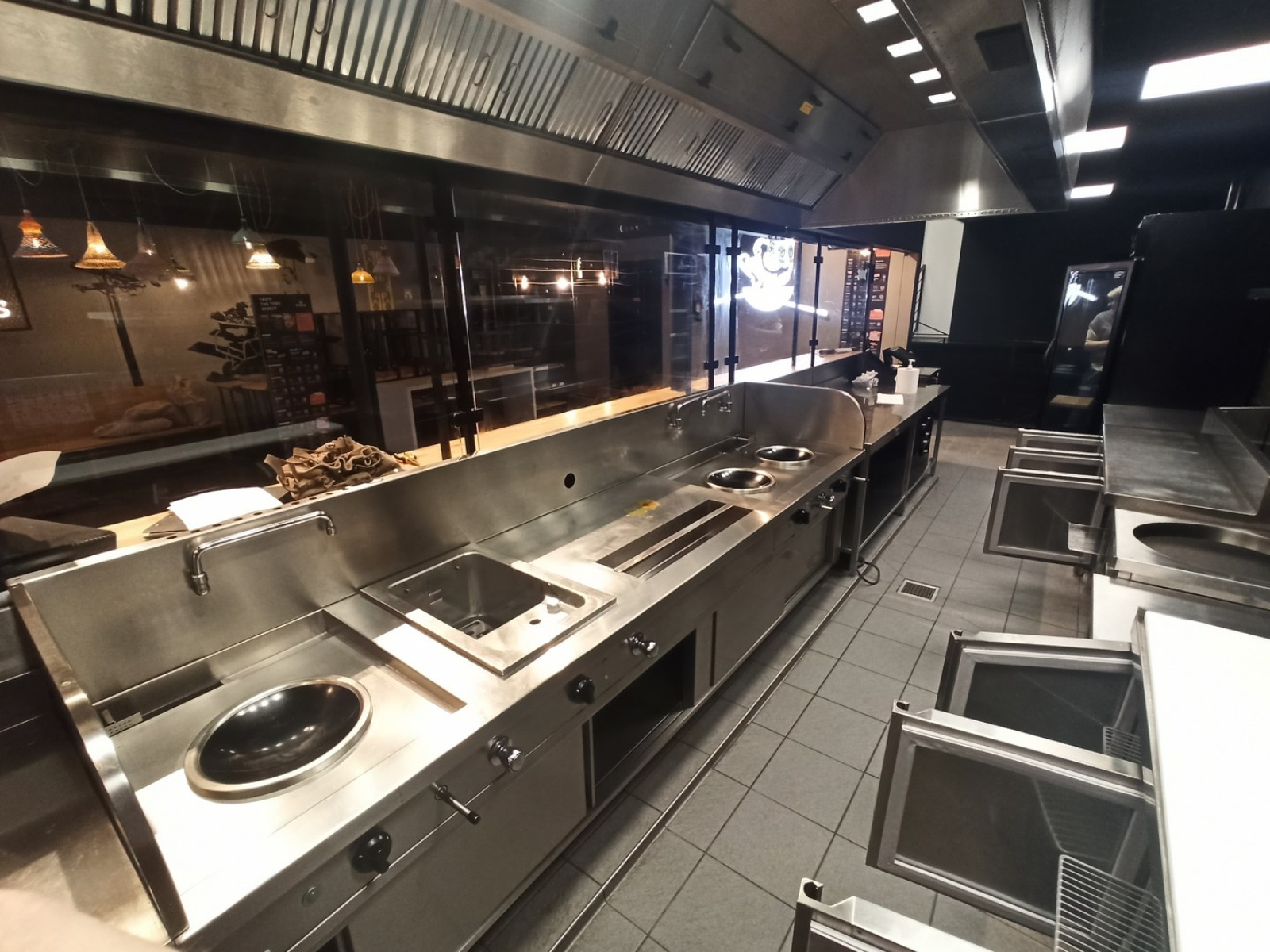 1°) En RDC de 166m² environ : d'une Salle de Restauration de 73m² environ pour 50 couverts environ (Assis à Table et Manges-Debout), donnant sur une Cuisine type "Wok" d'un seul tenant et indémontable de 21m² environ avec Induction triple feu & Bain Marie. Espaces Plonge et Laboratoire (26,7m² environ), Réserve (10,8m²), Local Technique, Local Poubelles, Espaces Sanitaires Clients PMR (7,5m²) et Personnel (2m²), et Circulations.