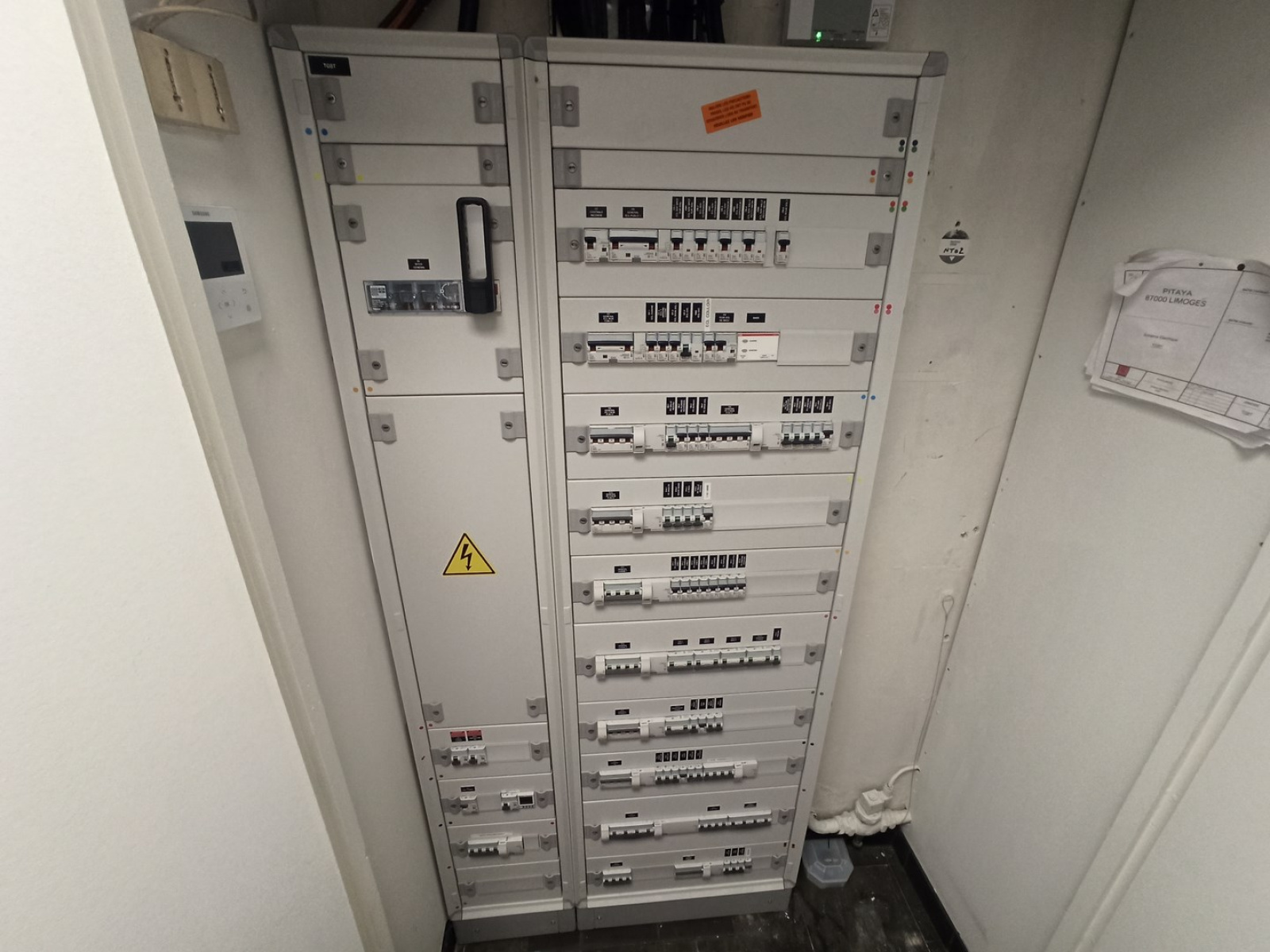 2°) En Sous-Sol de 154m² : accessible par escalier: Locaux Sociaux (37m² environ), Vestiaires équipés Homme (13m² environ) & Femme (13m² environ), Bureau "Manager" (10m² environ), Local Entretien (7m² environ), 3 Réserves/Remises/Stockage (de 7,3 / 15,8 / 23,7 m² environ), Bloc Sanitaires "Personnel" 2 WC/Lavabos (6,8m² environ), Local Technique (3,6m²) et Circulations (17,7m² environ). TGBT et Compteur EDF Tarif Jaune. Fibre et Baie de Brassage.