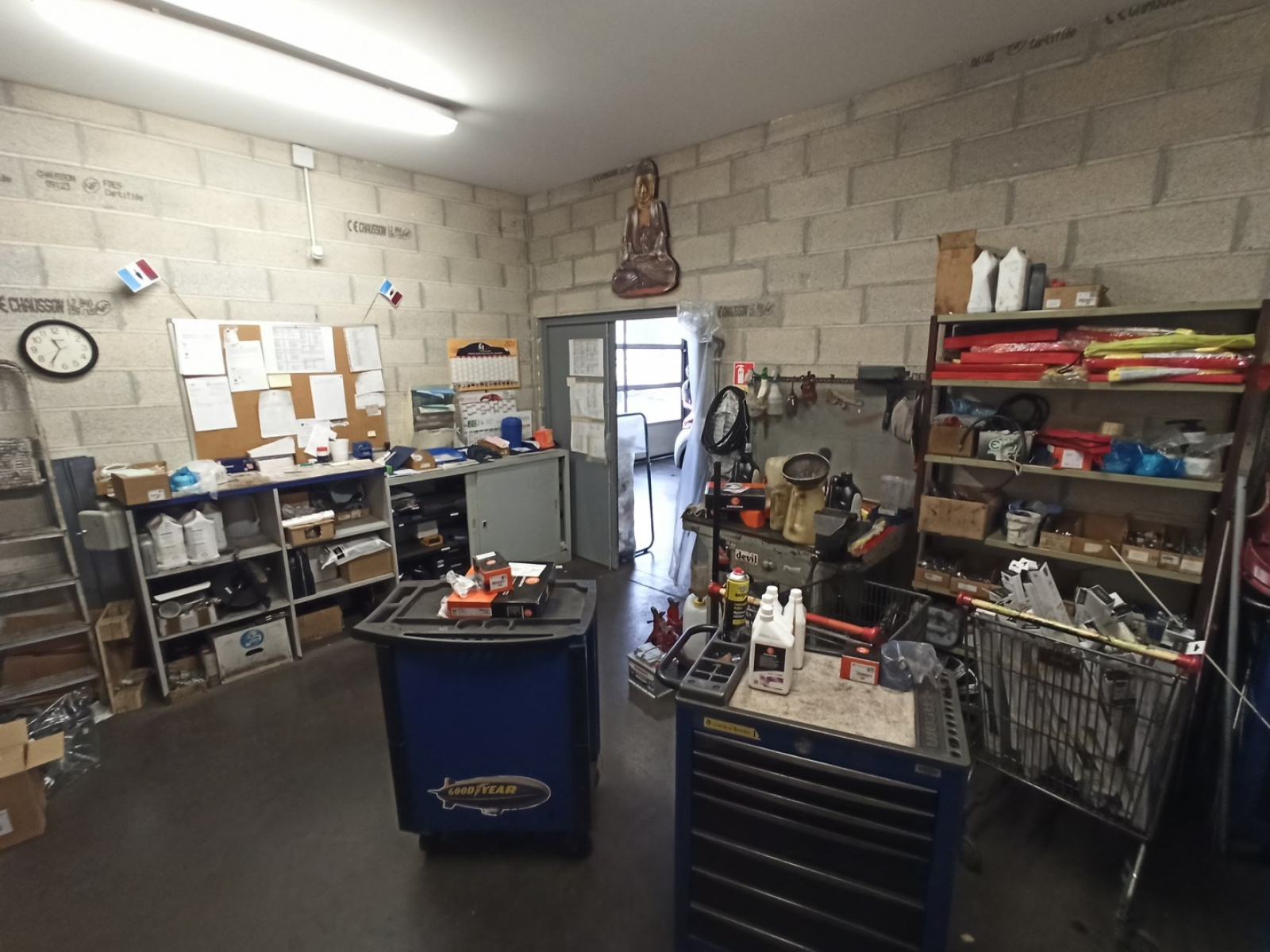 Le Bâtiment principal, Ossature métallique, Double peau, date de 2016 et dispose d'une emprise de plus de 3.800m² environ. Sa configuration actuelle offre notamment 1.110m² Commerciaux, Bureaux, Réunion, Locaux Sociaux, Vestiares et Sanitaires, et 3.000m² d'espaces Techniques et Ateliers, dont 600m² développés environ de Stockage pîèces et Archives. L'ensemble est complété par une aire de Lavage pour véhicules légers/utilitaires, et par un petit bâtiment annexe de 70m² environ de Bureaux.
