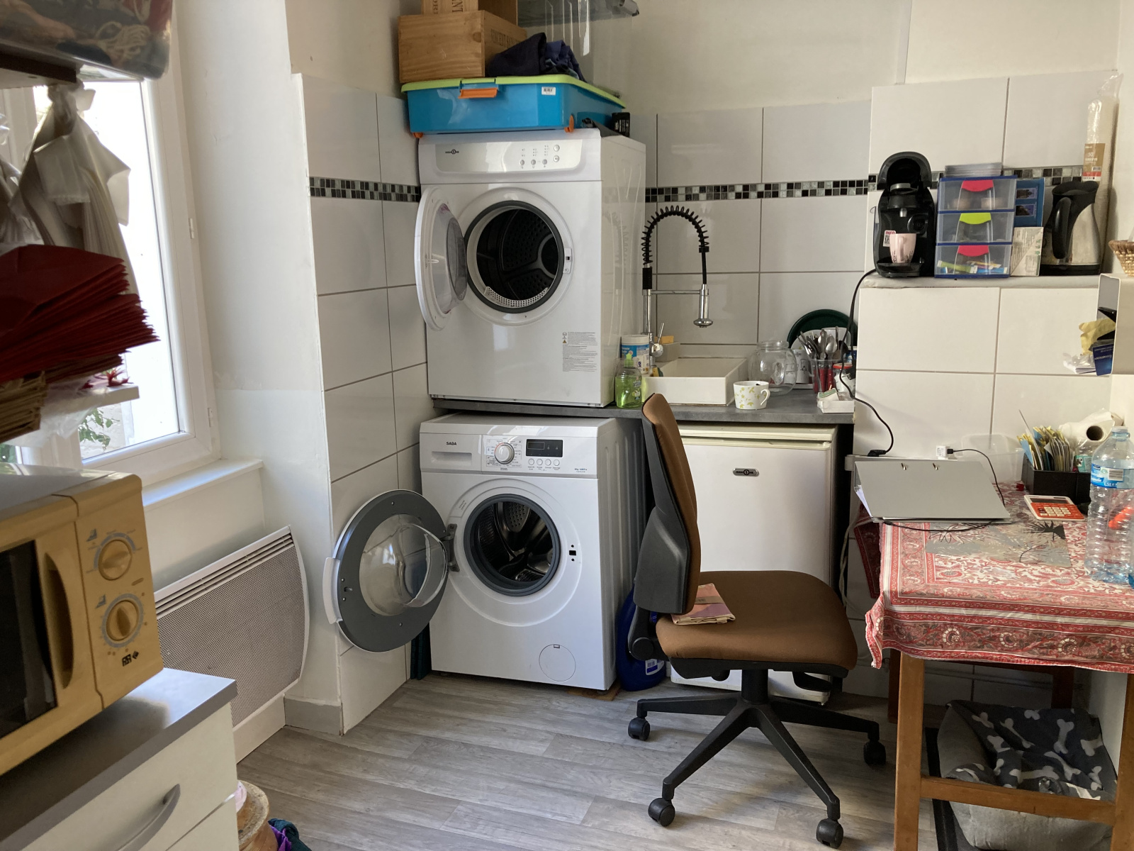 Pièce arrière avec lave-linge et et sèche-linge.