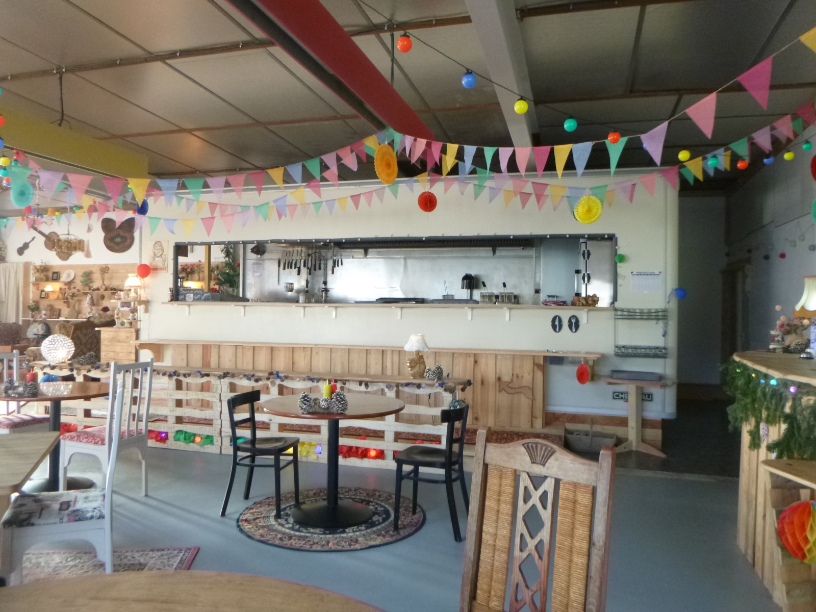 Le restaurant est composé d'une très grande salle, d'une cuisine de 15 m², d'un comptoir, d'un bureau de 6 m² et d'un coin sanitaires.
