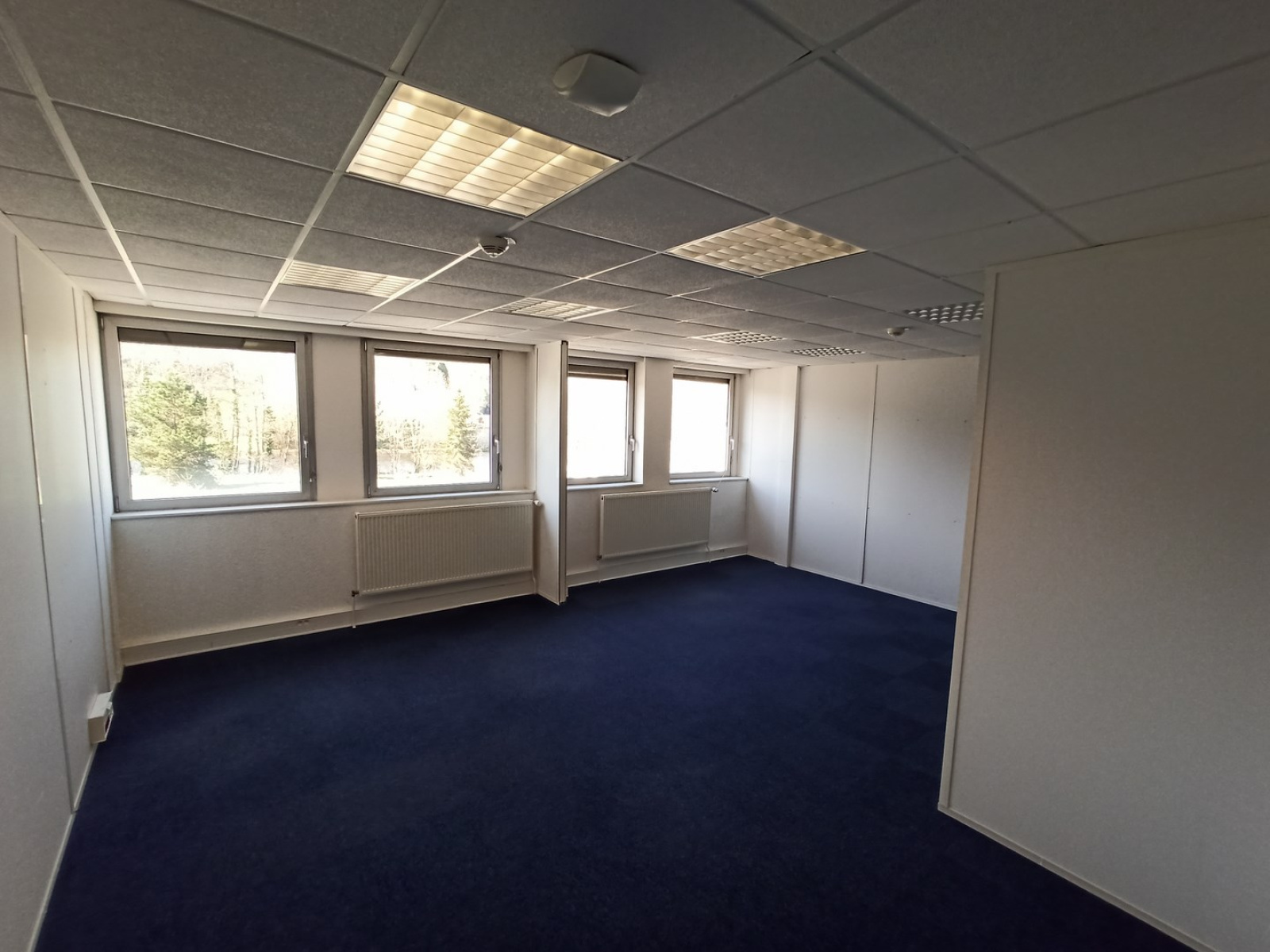 En R+1: Plateau de Bureau en "U" au R+1, d'une Superficie de 682m², accessible par escalier et ascenseur PMR via palier en RDC commun (avec actuellement Locataire du RDC). Constitué de: 10 Bureaux 1 personne (dont 3 Bureaux de Direction), 3 Bureaux 2 personnes, 1 Bureau 3 personnes, 5 Bureaux 4 personnes, 1 Bureau 8 personnes; Salle de Réunion (12 personnes), Salle d'Archives (+/-30m²), 1 Salon d'attente, 2 Locaux "Copieur", 1 Local TGBT, 2 Blocs Sanitaires H/F PMR + 2 autres H/F non PMR. Escalier de Secours.